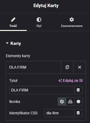 - Dodaj widget KARTY na stronę.